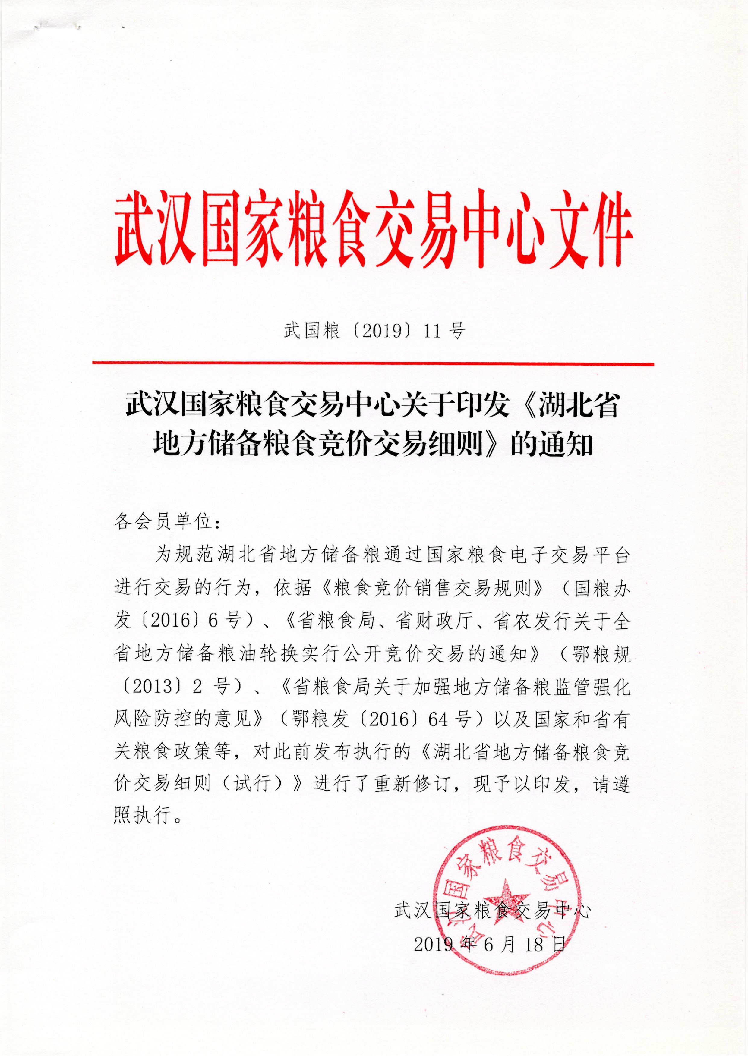 武汉湖北粮网关于印发《湖北省地方储备粮食竞价交易细则》的通知